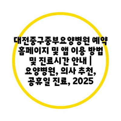 대전중구중부요양병원 예약 홈페이지 및 앱 이용 방법 및 진료시간 공지 | 요양병원, 의사 추천, 공휴일 진료, 2025 에 대해 자주 묻는 질문 TOP 5