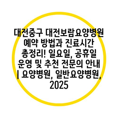 대전중구 대전보람요양병원 예약 방법과 진료시간 총정리! 일요일, 공휴일 운영 및 추천 전연락 공지 | 요양병원, 일반요양병원, 2025 에 대해 자주 묻는 질문 TOP 5