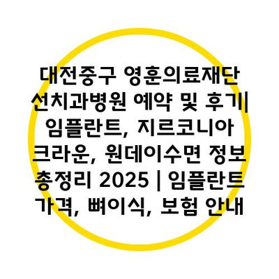 대전중구 영훈의료재단 선치과병원 예약 및 후기| 임플란트, 지르코니아 크라운, 원데이수면 정보 총정리 2025 | 임플란트 가격, 뼈이식, 보험 공지 에 대해 자주 묻는 질문 TOP 5