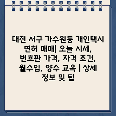 대전 서구 가수원동 개인택시 면허 매매| 오늘 시세, 번호판 가격, 자격 조건, 월수입, 양수 교육 | 상세 정보 및 팁