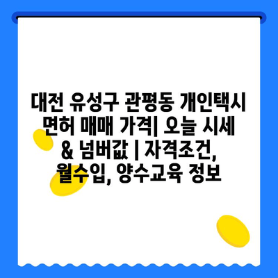 대전 유성구 관평동 개인택시 면허 매매 가격| 오늘 시세 & 넘버값 | 자격조건, 월수입, 양수교육 정보 에 대해 자주 묻는 질문 TOP 5