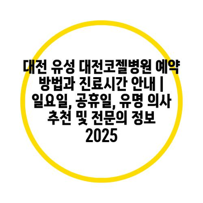 대전 유성 대전코젤병원 예약 방법과 진료시간 공지 | 일요일, 공휴일, 유명 의사 추천 및 전연락 정보 2025 에 대해 자주 묻는 질문 TOP 5