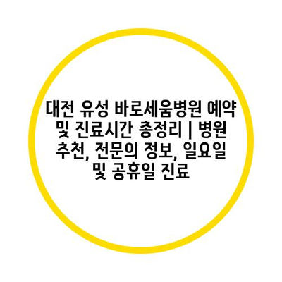대전 유성 바로세움병원 예약 및 진료시간 총정리 | 병원 추천, 전연락 정보, 일요일 및 공휴일 진료에 대해 자주 묻는 질문 TOP 5