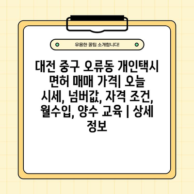 ✅ 대전 중구 오류동 개인택시 면허 매매 가격, 오늘 시세, 넘버값, 자격 조건, 월수입, 양수 교육에 대한 상세 정보를 확인해 보세요.