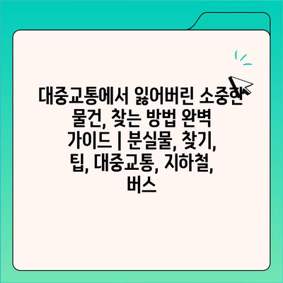 ✅ 대중교통에서 잃어버린 소중한 물건, 찾을 수 있는 확실한 방법이 궁금하다면? 지금 바로 확인하세요!