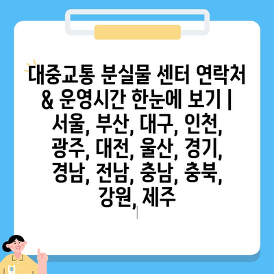 대중교통 분실물 센터 연락처 & 운영시간 한눈에 보기 | 서울, 부산, 대구, 인천, 광주, 대전, 울산, 경기, 경남, 전남, 충남, 충북, 강원, 제주