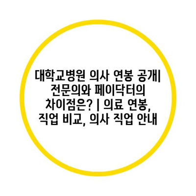 대학교병원 의사 연봉 공개| 전연락와 페이닥터의 차장점은?