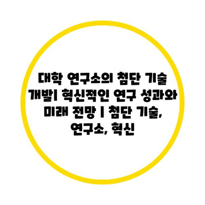 대학 연구소의 첨단 기술 개발| 혁신적인 연구 성과와 미래 전망 | 첨단 기술, 연구소, 혁신