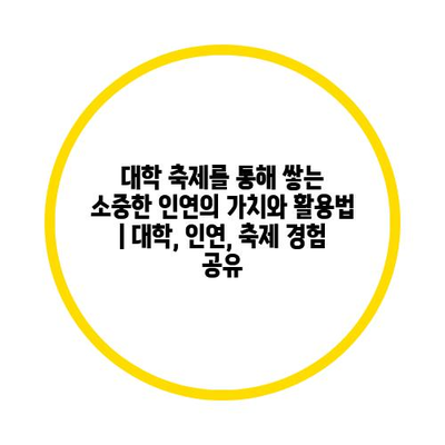 대학 축제를 통해 쌓는 소중한 인연의 가치와 활용법 | 대학, 인연, 축제 경험 공유 에 대해 자주 묻는 질문 TOP 5