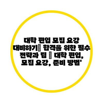 대학 편입 모집 요강 대비하기| 합격을 위한 필수 전략과 팁 | 대학 편입, 모집 요강, 준비 방법