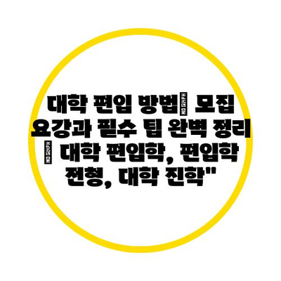 대학 편입 방법| 모집 요강과 필수 팁 완벽 정리 | 대학 편입학, 편입학 전형, 대학 진학