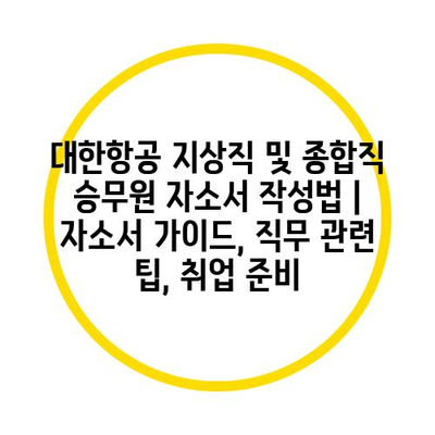 대한항공 지상직 및 종합직 승무원 자소서 작성법 | 자소서 설명서, 직무 관련 팁, 취업 준비에 대한 내용을 제공하겠습니다.
