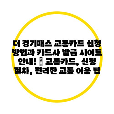 더 경기패스 교통카드 신청 방법과 카드사 발급 사이트 안내! | 교통카드, 신청 절차, 편리한 교통 이용 팁