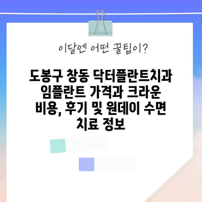 💡 도봉구 창동 닥터플란트치과의 임플란트 비용과 후기를 자세히 알아보세요. 💡