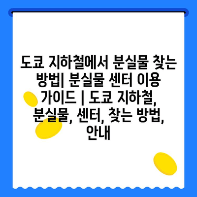 ✅ 도쿄 지하철에서 잃어버린 물건, 혹시 어디 있는지 궁금하신가요? 분실물 센터 이용 방법을 자세히 알아보세요!