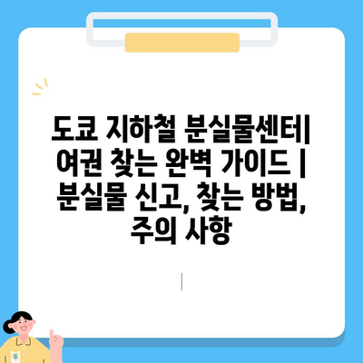 도쿄 지하철 분실물센터| 여권 찾는 완벽 가이드 | 분실물 신고, 찾는 방법, 주의 사항