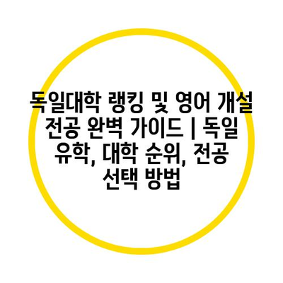 독일대학 랭킹 및 영어 개설 전공 완벽 가이드 | 독일 유학, 대학 순위, 전공 선택 방법