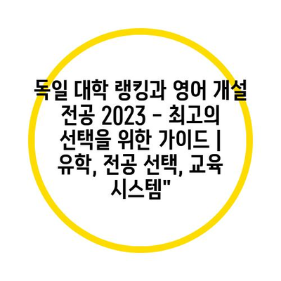 독일 대학 랭킹과 영어 개설 전공 2023는 유학을 계획하는 학생들에게 중요한 정보입니다.