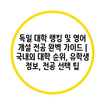독일 대학 랭킹 및 영어 개설 전공 완벽 설명서 | 국내외 대학 순위, 유학생 정보, 전공 선택 팁 에 대해 자주 묻는 질문 TOP 5