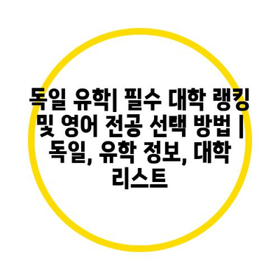 독일 유학은 많은 학생들에게 매력적인 선택입니다. 이 글에서는 독일에서의 유학 정보와 필수 대학 랭킹, 그리고 영어 전공 선택 방법에 대해 알아보겠습니다.