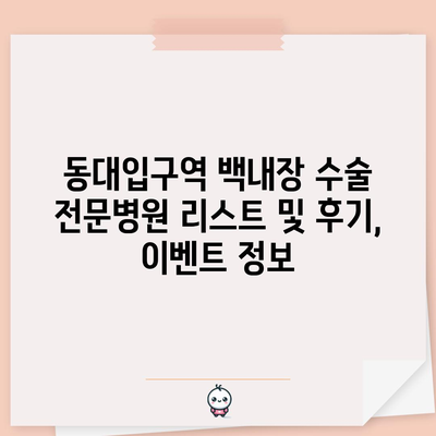 💡 동대입구역의 전문병원 리스트와 후기를 지금 확인해보세요! 💡