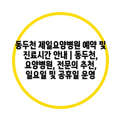 ✅ 동두천 제일요양병원의 진료시간과 예약방법을 자세히 알아보세요.