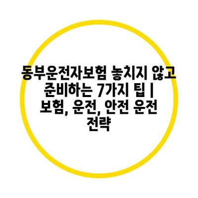 동부운전자보험 놓치지 않고 준비하는 7가지 팁 | 보험, 운전, 안전 운전 전략