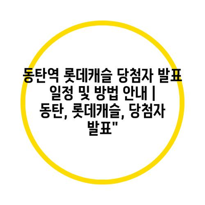 “동탄역 롯데캐슬 당첨자 발표 날짜에 대한 확인과 준비가 필수적입니다.”
