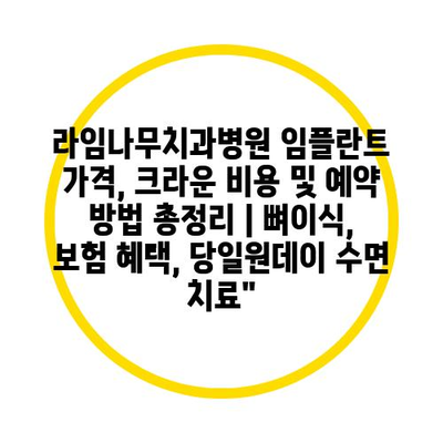 라임나무치과병원 임플란트 가격, 크라운 비용 및 예약 방법 총정리 | 뼈이식, 보험 혜택, 당일원데이 수면 치료”