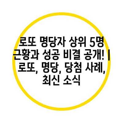 로또 명당자 상위 5명 근황과 성공 비결 공개! | 로또, 명당, 당첨 사례, 최신 소식