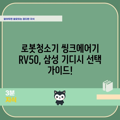 로봇청소기 씽크에어기 RV50, 삼성 기디시 선택 가이드!