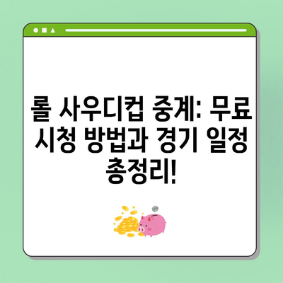 💡 롤 사우디컵 중계 정보를 지금 바로 알아보세요! 💡
