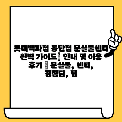 ✅ ### 버튼 설명: 롯데백화점 동탄점 분실물센터 이용 경험담과 꿀팁을 확인하고 소중한 물건을 되찾으세요!