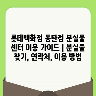 ✅ ### 버튼 설명: 롯데백화점 동탄점 분실물 센터에 연락하기 전, 꼭 확인해야 할 정보! 분실물 찾는 꿀팁과 유용한 정보들을 한눈에 확인하세요.