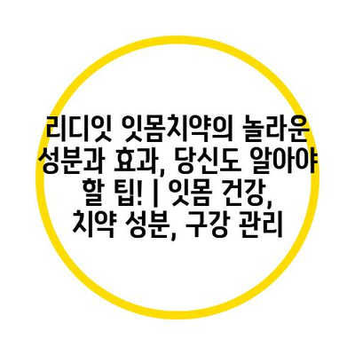 리디잇 잇몸치약의 놀라운 성분과 효과, 당신도 알아야 할 팁! | 잇몸 건강, 치약 성분, 구강 관리