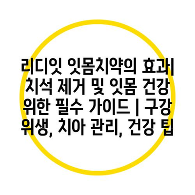 리디잇 잇몸치약의 효과| 치석 제거 및 잇몸 건강 위한 필수 설명서 | 구강 위생, 치아 관리, 건강 팁