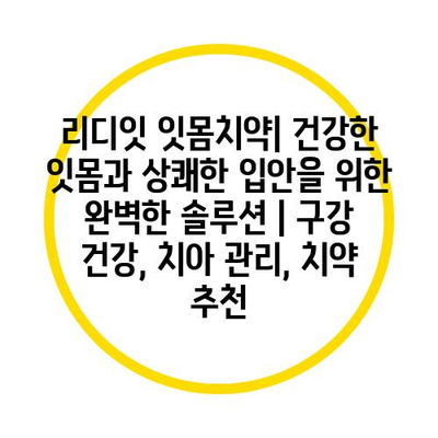 ✅ 리디잇 잇몸치약으로 건강한 잇몸을 유지하는 방법을 알아보세요.