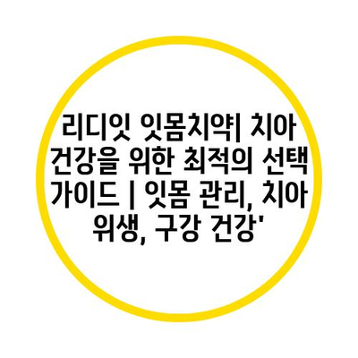 리디잇 잇몸치약| 치아 건강을 위한 최적의 선택 가이드 | 잇몸 관리, 치아 위생, 구강 건강’