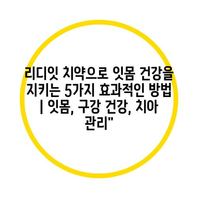 리디잇 치약으로 잇몸 건강을 지키는 5가지 효과적인 방법 | 잇몸, 구강 건강, 치아 관리”