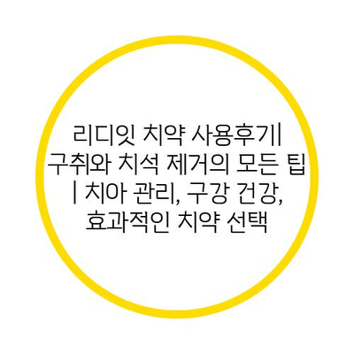 ✅ 리디잇 치약의 효과와 사용법을 지금 바로 알아보세요!