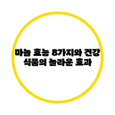 마늘 효능 8가지 건강 식품을 알아보세요! 면역력 강화, 심혈관 건강 등 마늘이 제공하는 다양한 혜택에 대해 자세히 설명합니다.