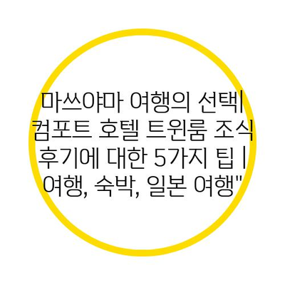 마쓰야마를 방문할 계획이라면, 컴포트 호텔의 트윈룸과 조식에 대한 내용을 미리 체크하는 것이 좋습니다.