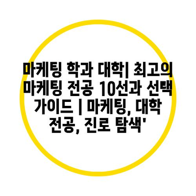 본 글에서는 최고의 마케팅 전공 10선을 소개하며, 각 전공의 특징과 장점을 파악할 수 있도록 돕고자 합니다.