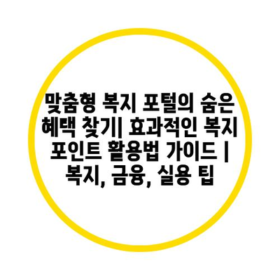 맞춤형 복지 포털의 숨은 혜택 찾기| 효과적인 복지 포인트 활용법 가이드 | 복지, 금융, 실용 팁