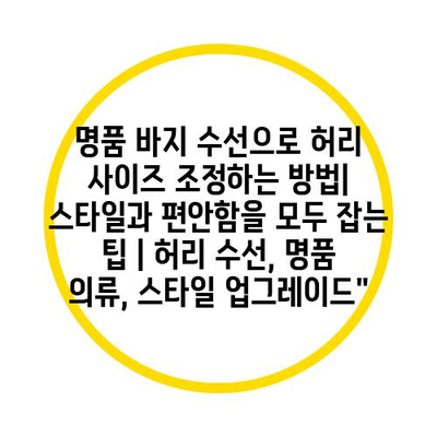 명품 바지 수선으로 허리 사이즈 조정하는 방법| 스타일과 편안함을 모두 잡는 팁 | 허리 수선, 명품 의류, 스타일 업그레이드”