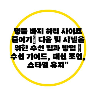 명품 바지의 허리 사이즈를 줄이는 것은 종종 필수적인 과정입니다. 디올이나 샤넬과 같은 브랜드의 바지는 품질이 뛰어나지만, 본인의 체형에 맞게 조정해야 할 때가 많습니다.
