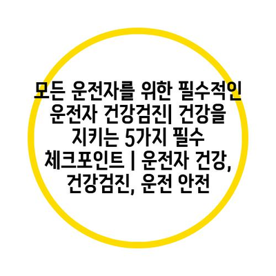 모든 운전자를 위한 필수적인 운전자 건강검진| 건강을 지키는 5가지 필수 체크포인트 | 운전자 건강, 건강검진, 운전 안전 에 대해 자주 묻는 질문 TOP 5