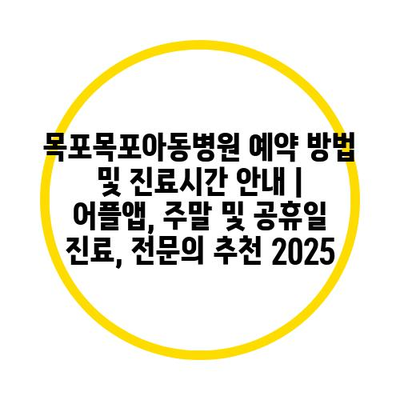 목포목포아동병원 예약 방법 및 진료시간 공지 | 어플앱, 주말 및 공휴일 진료, 전연락 추천 2025에 대해 알아보겠습니다.