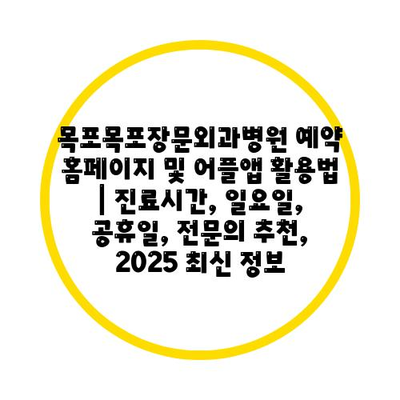 ✅ 목포목포장문외과병원의 진료시간과 예약 방법을 알아보세요!