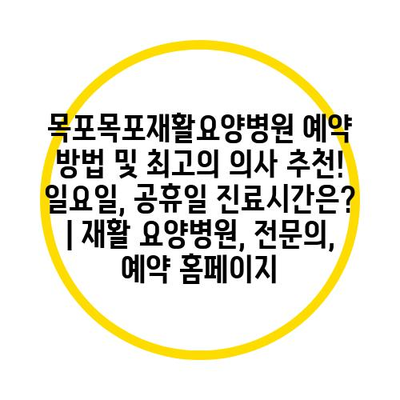 목포목포재활요양병원 예약 방법 및 최고의 의사 추천! 일요일, 공휴일 진료시간은?